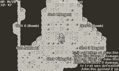 You're John Die, a die who can roll itself to trigger effects depending on the result. Higher results means stronger effects, but you also need to slot abilities into specific results, so you need to figure out which abilities you'd like to be stronger or weaker, which to occur more often, etc.
